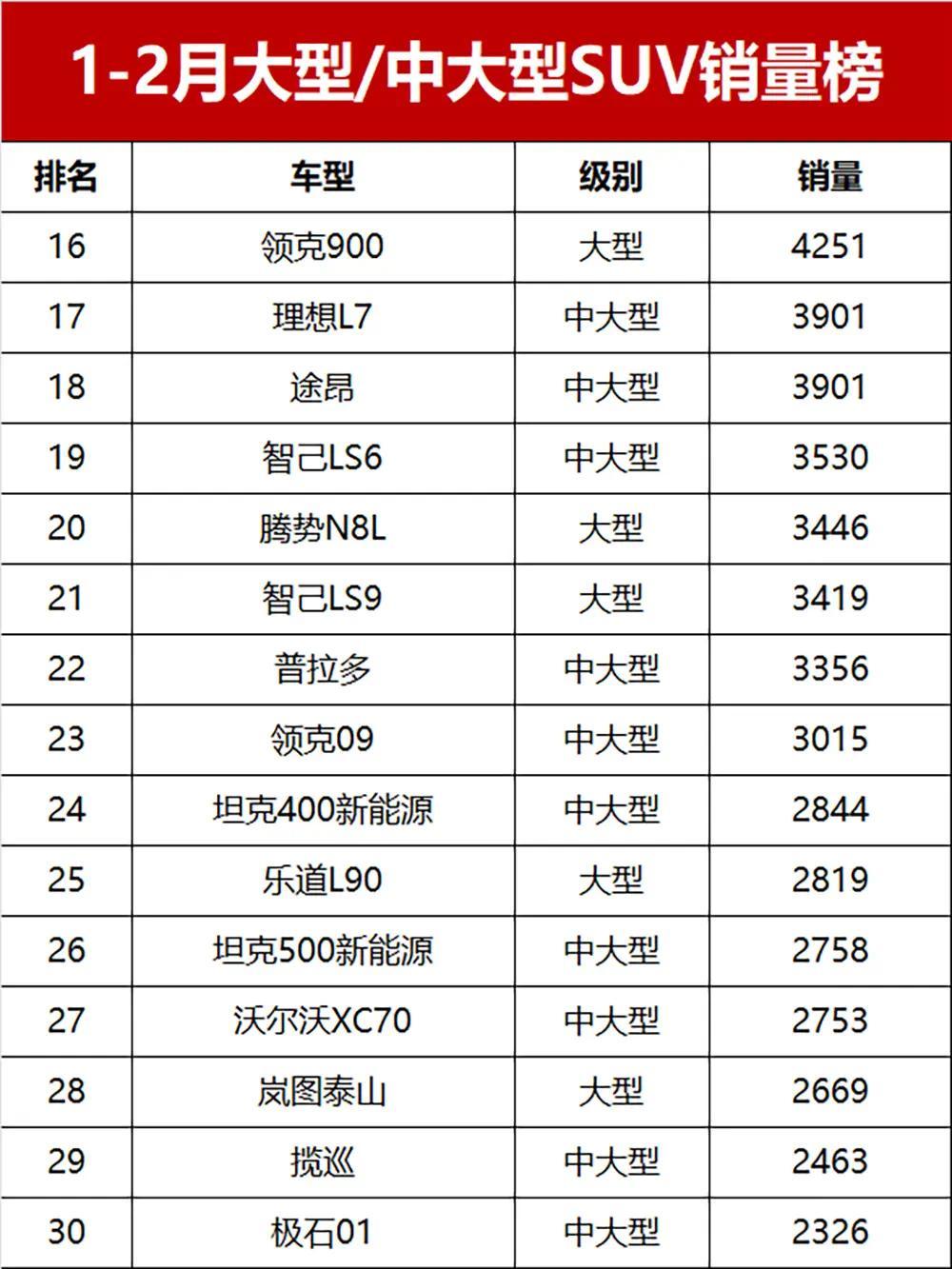 【2026年1-2月大型和中大型SUV零售销量排行榜】要说今年前两个月车市最意外的亮点免费配资,当属大型和中大型SUV市场!乘联会数据显示,受多种因素影响,2026年1-2月国内整体SUV市场零售销量仅140.2万辆,同比下跌9.8%,不少细分市场都陷入了增长瓶颈。但反观大型和中大型SUV市场,却逆势突围、一路走高,其中中大型SUV累计零售销量达11.1万辆,同比大涨90.9%,更有5款车型累计销量超2万辆,月均销量直接破万,堪称车市“逆行者”!话不多说,完整版销量榜新鲜出炉,带你看看谁才是今年开春的“大车王者”!