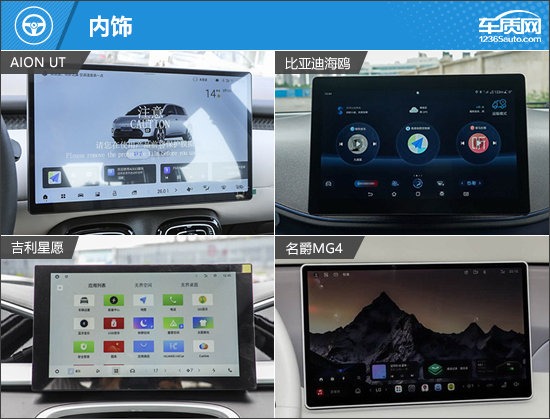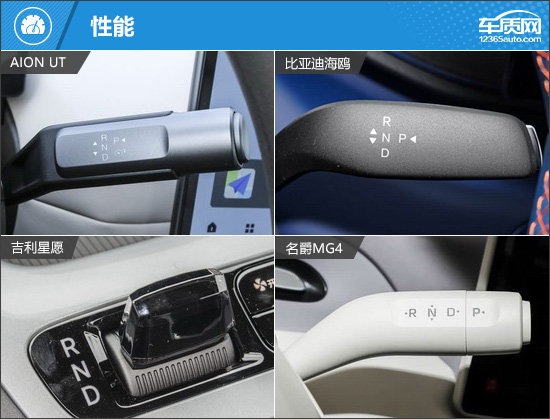 内饰方面,四款车型都采用了当下新能源车型常见的简约风格,且不约而同地配备了悬浮式中控屏。此外,除了吉利星愿之外,另外三款车还提供悬浮式全液晶仪表,进一步提升了科技感。为了方便驾驶员在驾车过程中进行操作,除AION UT外,另外三款车型均保留了常用功能实体按键。换挡形式方面,吉利星愿采用电子挡把换挡,另外三款车型则是电子式怀挡换挡,更有利于前排储物空间的优化。