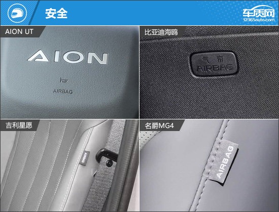安全配置方面,比亚迪海鸥和名爵MG4的被动安全配置表现要明显好于另外两款车型,AION UT在这一环节表现不佳,甚至没有提供前排侧气囊。主动安全方面,名爵MG4表现略好,独享哨兵模式/千里眼和内置行车记录仪。