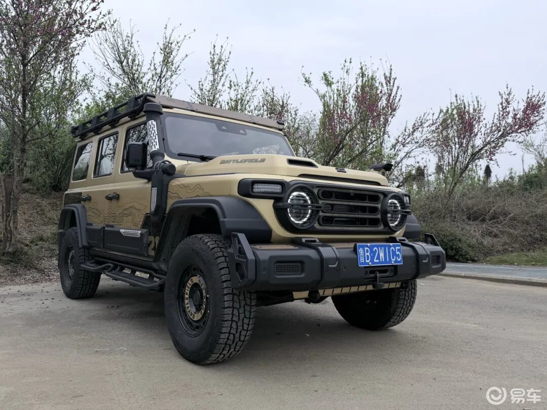 作为官改车型,T01 高地可以说从颜值上就精准“拿捏”了越野用户的喜好,传承家族「一拱、二圆、三横」的标志性设计元素,前罩进气格栅如山峦般隆起,与“高地”理念相呼应,搭配宽大而稳重的“塔式”车身,以及专属定制色“晨曦金”,“高地纹”设计的门饰板与车身贴 ,进一步强化硬派风格,而增加的防滑抗撞侧踏板、瞄准镜造型门把手、迫击炮造型涉水喉、武装带安全扣造型前保、防爆网式灯罩等车身拓展件,满足越野用户颜值诉求的同时,也提升了全地形用车的实力。