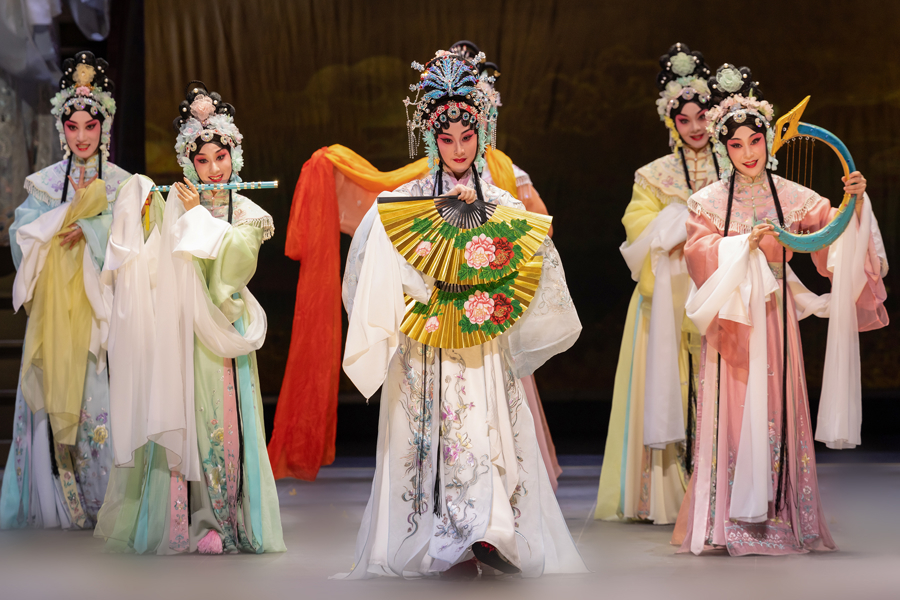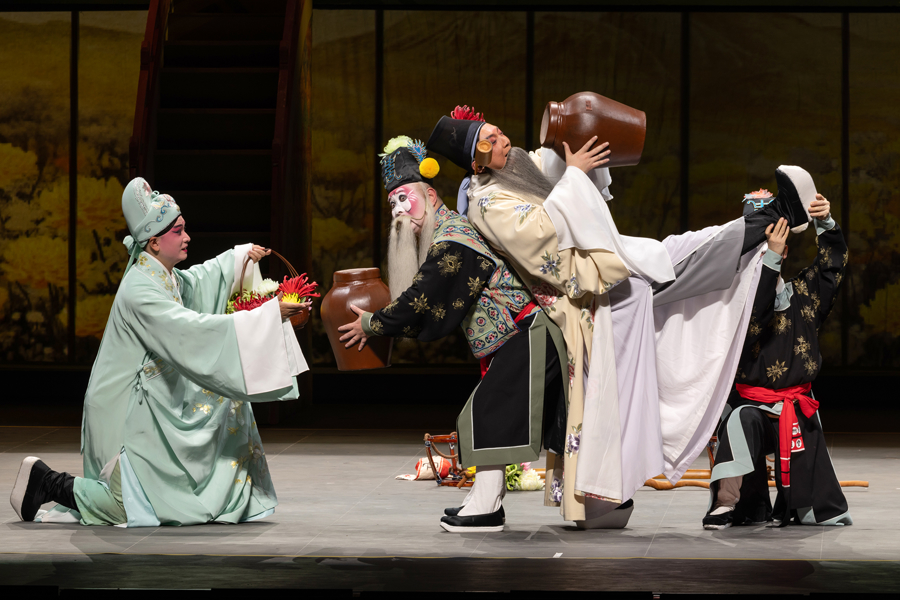 本次演出在剧目内容上进行了精益求精的提升。其中,《江州送酒》首次于昆曲舞台塑造陶渊明形象,令戏剧性与喜剧性增强。《中秋奏凯》文武兼备,场面热烈,展现家国情怀。《长生殿·重圆》则更为完整地铺陈月殿重逢的华美画卷,并完整保留了核心旋律《霓裳羽衣》及经典大场面“羽衣三叠”。