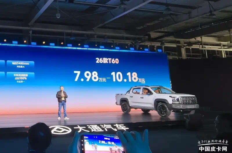3月30日晚,大通旗下三款新皮卡产品迎来了正式上市。其中全新星际L官方指导价10.88万—15.98万元;26款T60与26款星际EV起售价格分别为7.98万元与24.98万元。在购车福利方面,大通除了带来常规的增购、换购与金融等政策外,还推出了7天免费试用福利,该试用活动将在新车上市后立刻在全国推广,感兴趣的朋友可以前往当地经销商了解详情。