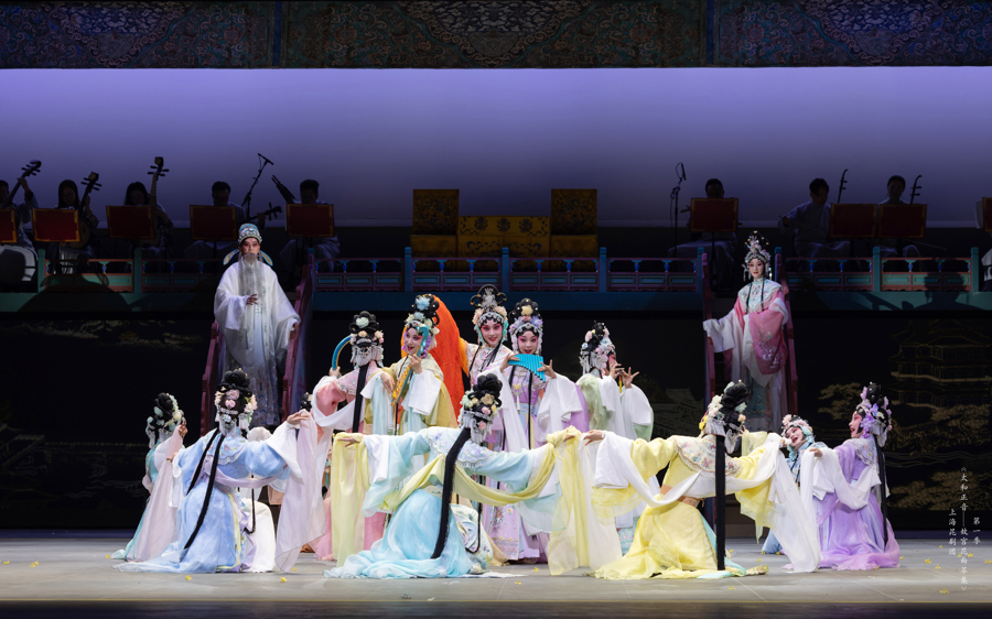 2019年,上海昆剧团首次踏入故宫的大门,双方共同围绕学术研究、剧目创作、文化传播开展深度合作。《太和正音——故宫昆曲萃集》(第一季)从故宫博物院收藏的3200余种6467部11498册清宫戏本中精心整理改编出以中秋、重阳两大节令为主题的《江州送酒》《中秋奏凯》《长生殿·重圆》三出剧目,集结上昆五班三代强大演出阵容。